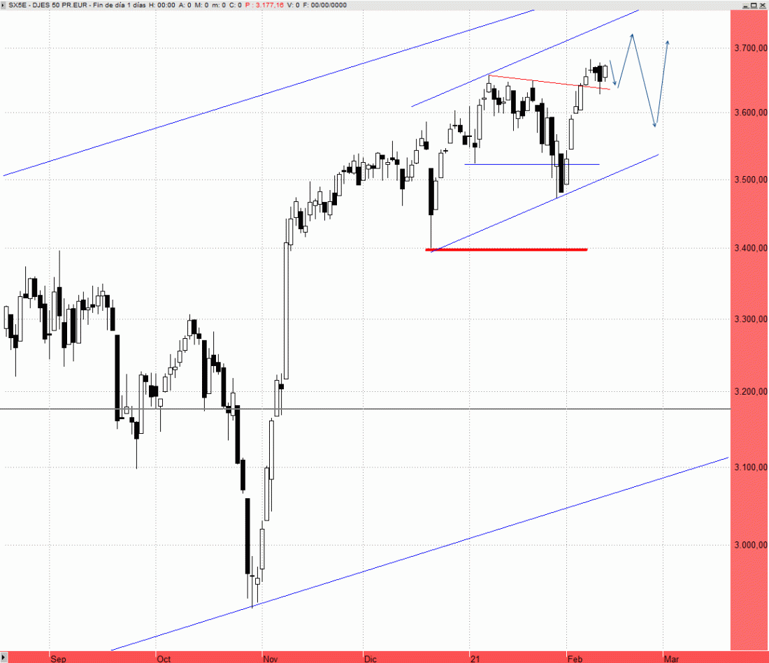 Los principales índices de referencia podrían estirar las ganancias a corto plazo hacia la zona de los 3.730/3.745 puntos de Eurostoxx 50, pero va a ser complicado que sostengan más avances sin consumir más tiempo en lateral, por lo que aunque veamos nuevos máximos crecientes lo más probable es que las cotizaciones vuelvan a meterse en el rango en el que se vienen moviendo en los últimos meses en una fase claramente consolidativa de las fuertes subidas, sobre todo, acumuladas el pasado mes de noviembre.
