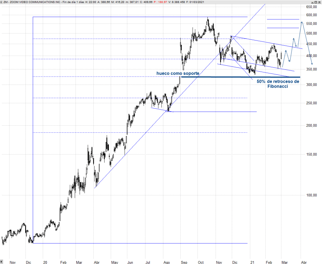 Zoom Video Communications es una de las selectas compañías que este pasado 2020 ha pasado a formar parte de nuestras vidas al facilitarnos las relaciones tanto personales como laborales en un contexto de restricciones de movilidad. Desde los mínimos de finales de 2019 su cotización se revalorizó más de un 850% hasta que formo un techo temporal prácticamente en la cota de los 600 dólares. Ayer presentó unas cuentas del cuarto trimestre mejores de lo esperado y fueron recibidas muy positivamente por el mercado con sus acciones liderando el Nasdaq 100. El especialista en videoconferencias sigue contando con vientos de cola debido a la pandemia.
