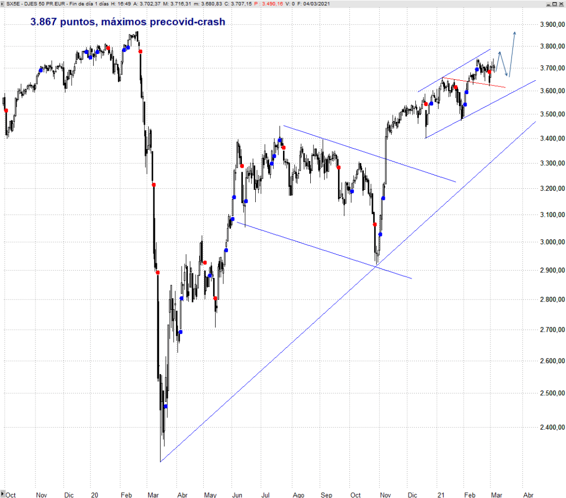 Ese entorno es lo mínimo que exigimos que debe de superar para poder dar por concluida su consolidación. Superando los 8.500 puntos favoreceríamos mayores subidas hacia los 9.080 puntos y se alejarían en mayor medida los riesgos de ver una corrección más profunda por debajo de los 7.700 puntos en próximos meses.