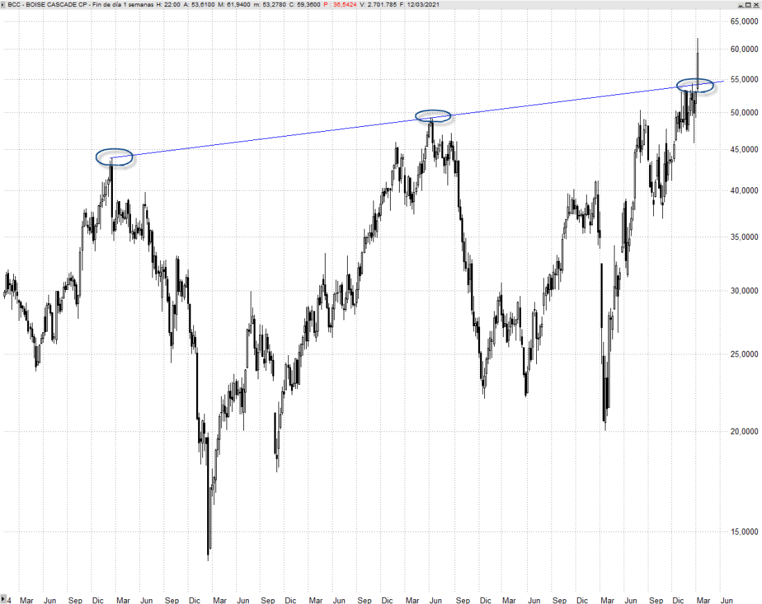 • Boise Cascade, que ha confirmado un gran patrón de giro.
