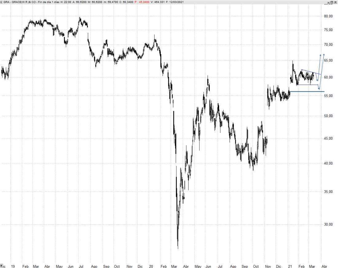 • W.R Grace & Co., que consolida posiciones para atacar probablemente los 68/73 dólares.
