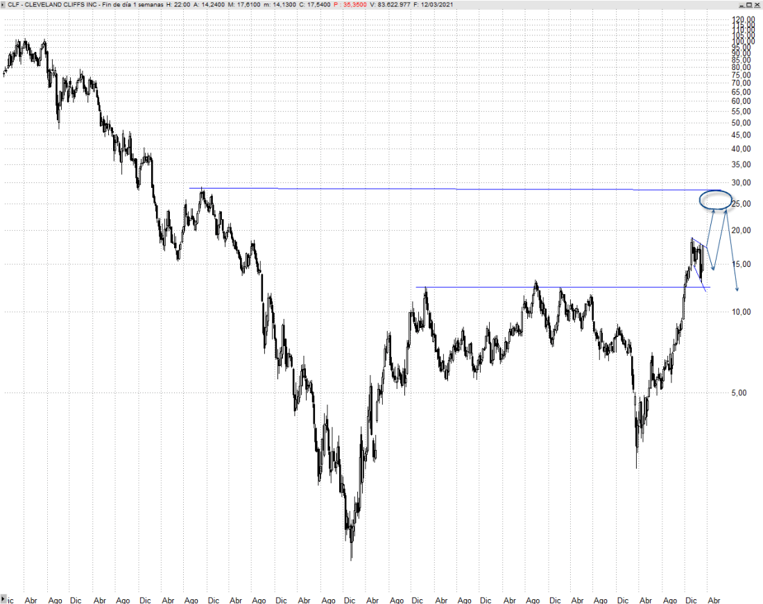 • Cleveland Cliffs, que presiona para hacer lo propio y podría seguir avanzando hacia al menos el entorno de los 23,40 dólares.