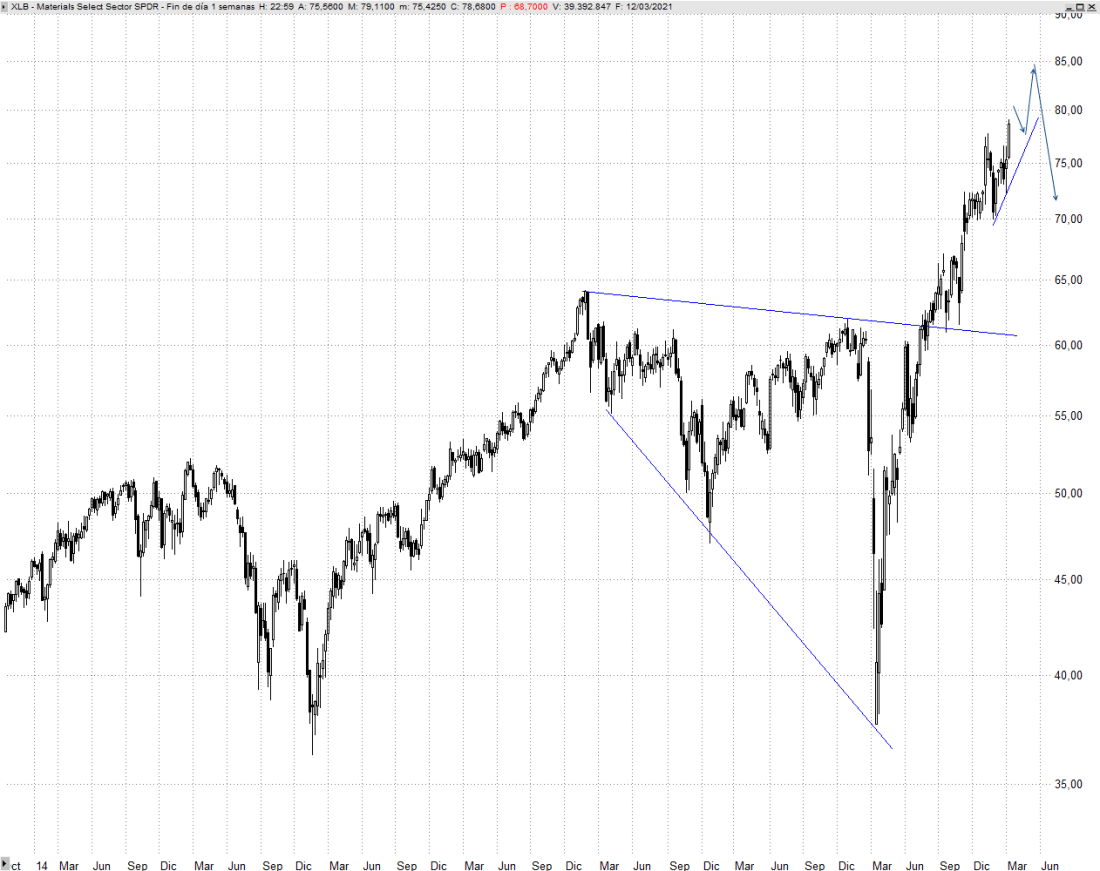 En todo caso, mientras el XLB no pierda los 73 dólares no habrá debilidad destacable, y cualquier consolidación la veremos como una pausa para alcanzar la zona señalada.