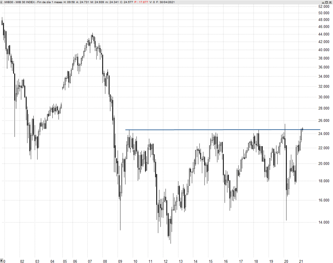Un elemento a tener en cuenta y que favorecería las aspiraciones de reestructuración alcista de Eni sería la superación definitiva del importantísimo entorno resistivo que presiona el Mib 30 italiano. Eso generaría un viento de cola que a buen seguro agradecería la cotización de Eni.