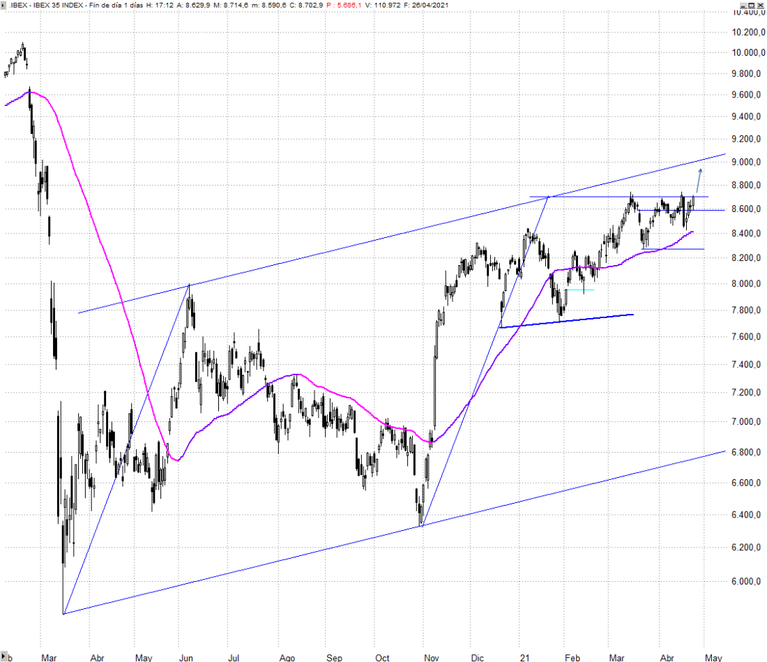El positivo cierre del viernes en Wall Street ha transferido calma a las bolsas europeas en la primera sesión de la semana. Los alcistas siguen al mando tras el anuncio la semana pasada del plan impositivo sobre las ganancias de capital de Joe Biden. La bolsa sigue haciendo caso omiso a las noticias negativas, lo que demuestra la fortaleza de fondo que aún mantiene la fase alcista originada hace algo más de un año. A pesar de la sobrecompra, que lógicamente ralentiza los ascensos, no tenemos ninguna evidencia que ponga en cuestión la continuidad de la tendencia.