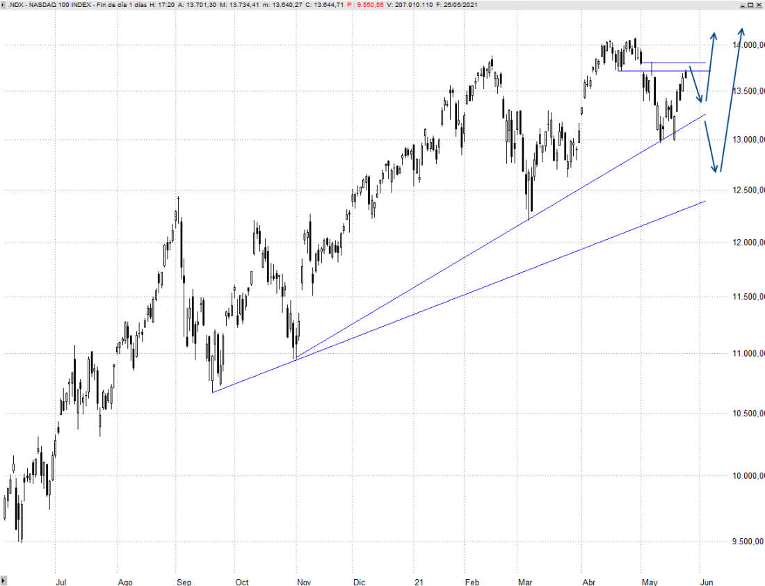 Seguimos muy pendientes de lo que acontezca en Wall Street de cara a poder confiar en la reanudación de la tendencia. A corto plazo lo mínimo que veníamos exigiendo desde Trader 35 Investment para hablar de fortaleza en el Nasdaq 100 se cumplió ayer, la superación de los 13.530 puntos, y para mayor garantía la superación de los 13.720/13.800 puntos. Parece que los inversores europeos están esperando la confirmación de este segundo punto para poder considerar que se aleja definitivamente el riesgo de ver una recaída a los 12.600 puntos de Nasdaq 100.