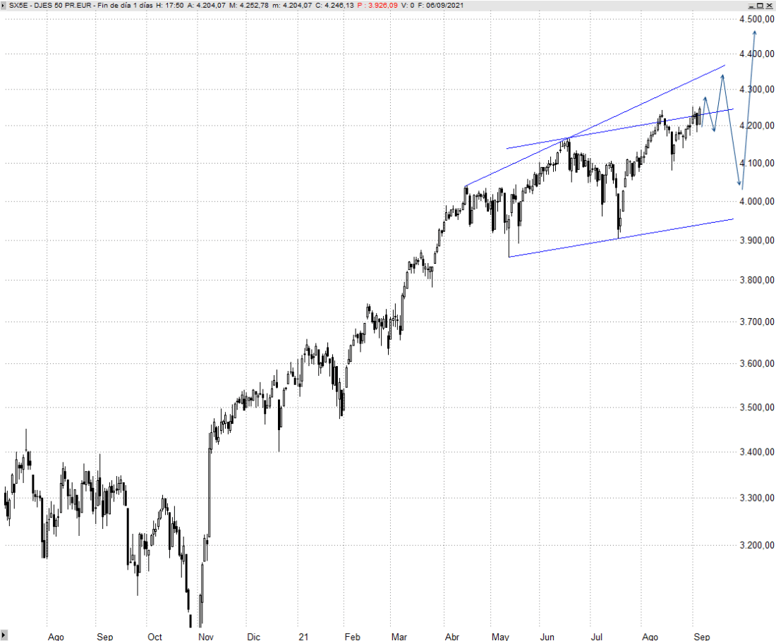 Solo si supera con mucha contundencia la zona de los 4.325/4.360 puntos de Eurostoxx 50 consideraríamos con todas las de la ley que estamos ante la reanudación de la tendencia alcista que define desde marzo del pasado año, cuando el crash provocado por la pandemia logró encontrar suelo.
