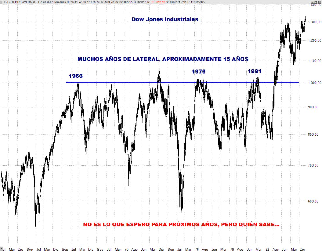 Estamos ciertamente en una gran encrucijada. Las bolsas por el momento lo que hacen es corregir parte de lo ascendido desde los mínimos de marzo de 2020. Tras los fuertes ascensos en las cotizaciones que hemos disfrutado meses atrás, no podemos sorprendernos en exceso de ver una corrección de la mitad o dos terceras partes, debería ser casi considerado como normal. De hecho, el Eurostoxx y Dax ya prácticamente han corregido la mitad. Una vez que concluya esta corrección la economía tendrá que mostrar su músculo, ya sin tanto estímulo, ya sin tanto doping, para que pueda desarrollarse lo que debería de ser la fase de “alza fundamental”, lo que trasladado en el tiempo podría ser la subida vista entre 2012 y 2018, sobre todo en Wall Street. Para que pueda desarrollarse con normalidad esta fase de alza fundamental, a parte evidentemente de la paz, es vital que la inflación vuelva a niveles asumibles. De lo contrario las bolsas sufrirían previsiblemente muchas idas y venidas y no podremos caer en la complacencia de confiar en el largo plazo como solución a malas decisiones de inversión. Viene bien de vez en cuando recordar que los inversores no tenemos recursos ilimitados en tiempo ni en dinero, y todos deberíamos hacer un examen honesto de nuestros planes de inversión, de cómo resistirían nuestras carteras y nuestro estómago si las cotizaciones no se comportan como lo hicieron la pasada década y entramos en una fase de ostracismo con movimientos laterales y sin tendencia. Repito, ¿qué pasaría si por una década carecemos de tendencia? Dicho sea de paso, soy muy optimista con respecto al futuro, pero ¿y si no se cumplen mis expectativas? Cabeza fría y pies calientes.