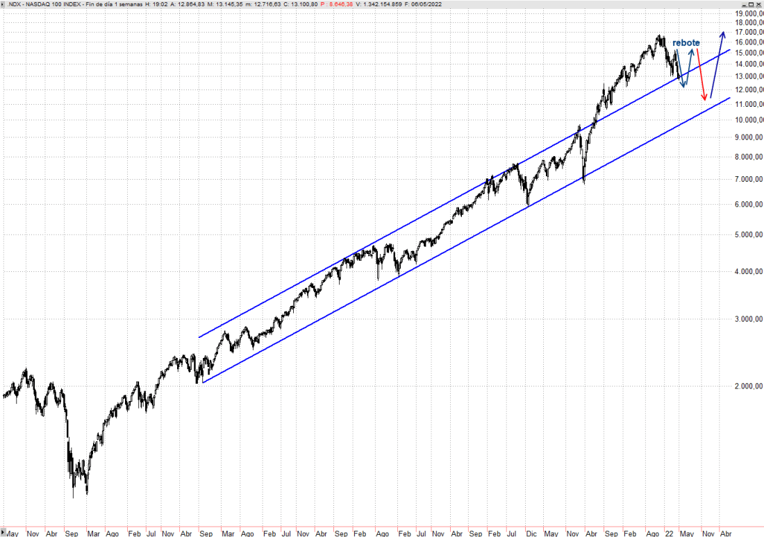 Los principales índices estadounidenses coquetean con los mínimos del mes de febrero tras el comienzo de la invasión de Ucrania por las tropas rusas. En marzo asistimos a un rebote, que aún consideramos vivo a pesar de las últimas caídas. Dicho rebote podría desplegar otro tramo alcista que vuelva a aproximar a los índices a máximos, pero de momento no especularíamos con ello. Hablamos, por tanto, de un potencial rebote con dos tramos alcistas y el actual bajista que coquetea con los mínimos de febrero. Para considerar que toma cuerpo un segundo segmento alcista dentro del rebote lo mínimo que exigimos es que el Nasdaq 100 recupere los 13.600 puntos. Mientras eso no suceda seguiremos esperando más caídas hacia próximos objetivos que aparecen en las inmediaciones de los 12.300 puntos y en 11.780, lo que ya representaría un retroceso del 50% de toda la gran recuperación del “Covid-Crash”. Alcanzando esos niveles ya no dudaríamos en comprar al menor signo de giro.